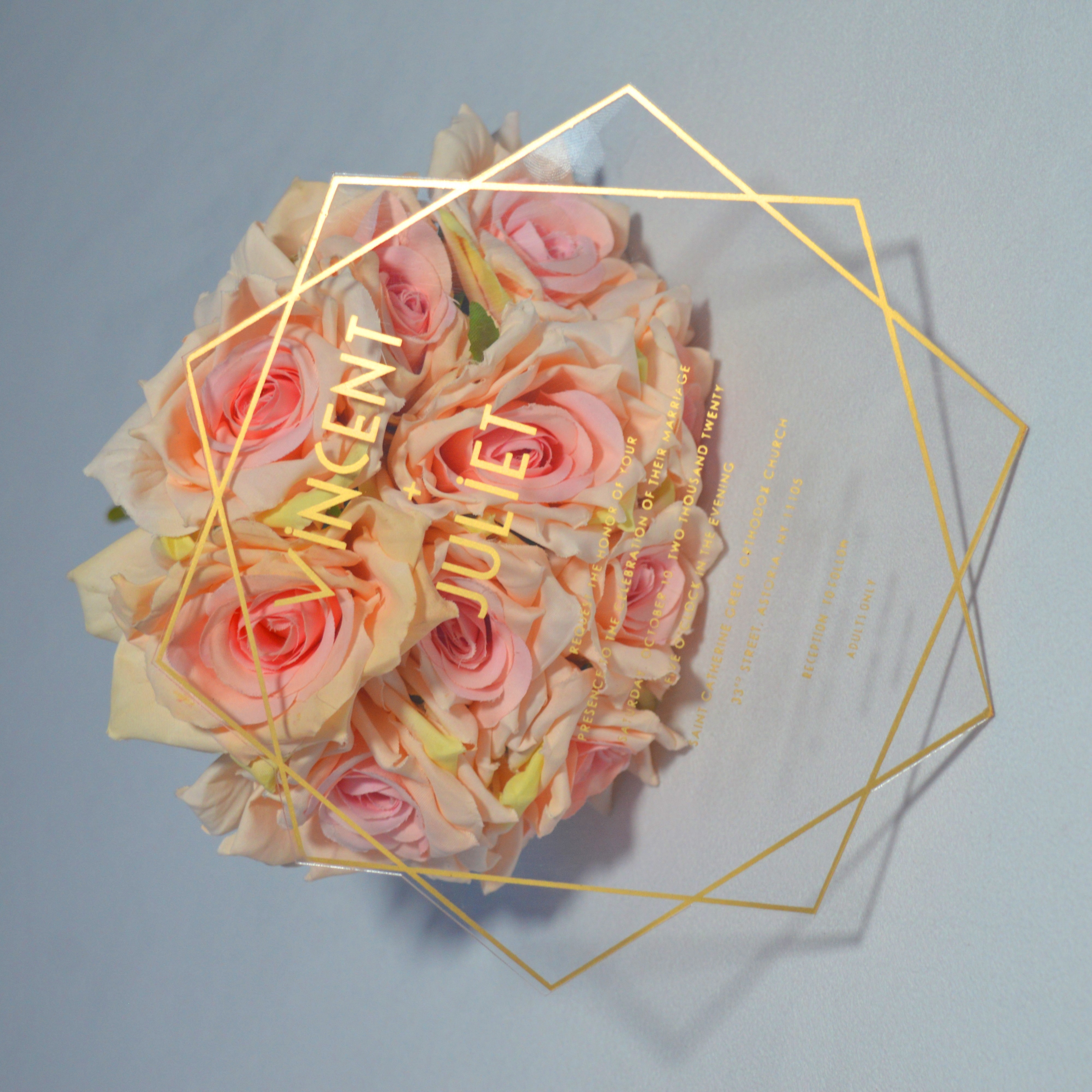 Clear Acrylic Wedding Invitation: Polygonal Geometric Shape Acrylic Invite