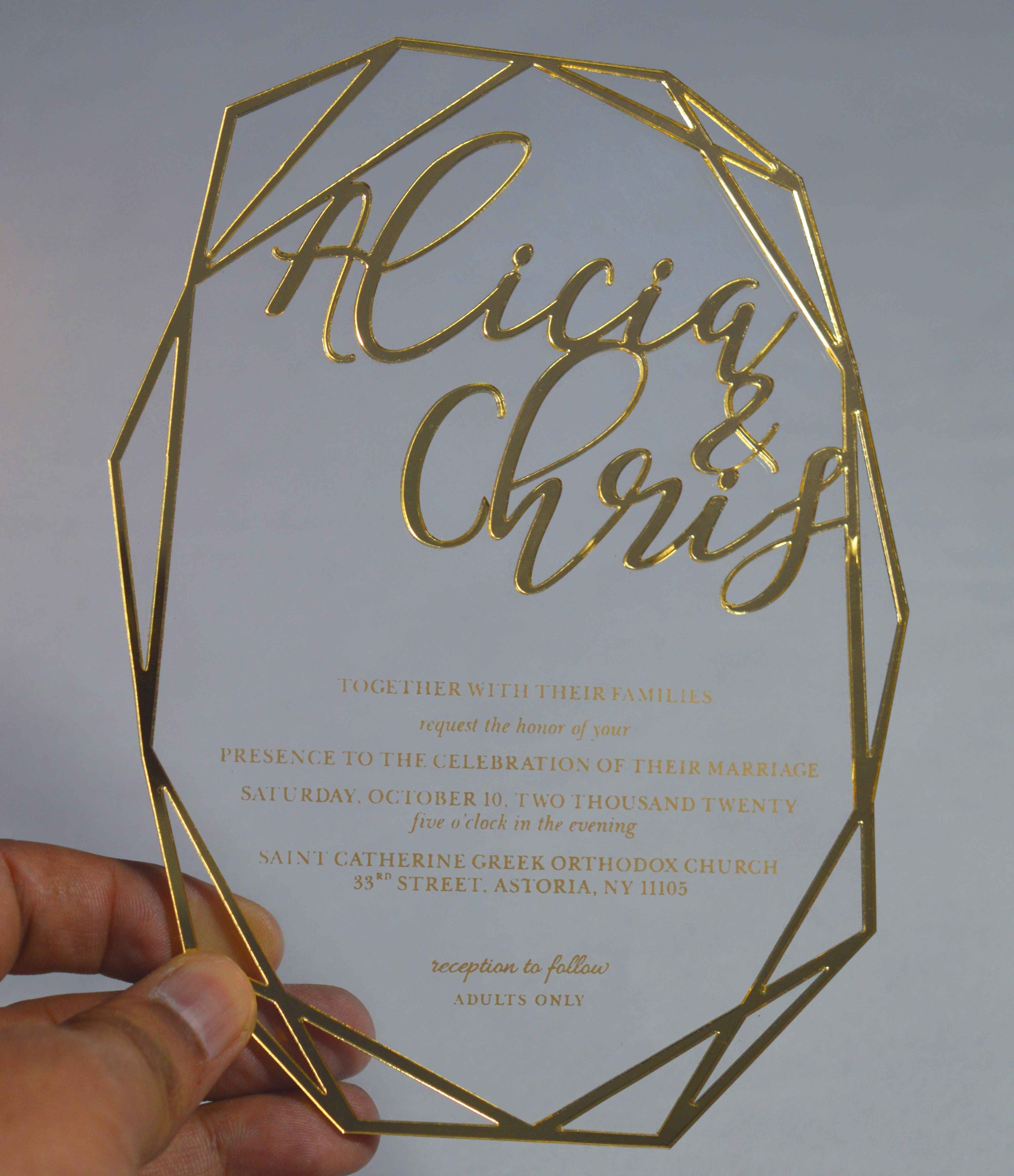 Clear Acrylic Wedding Invitation: Gold Mirror Acrylic Invite