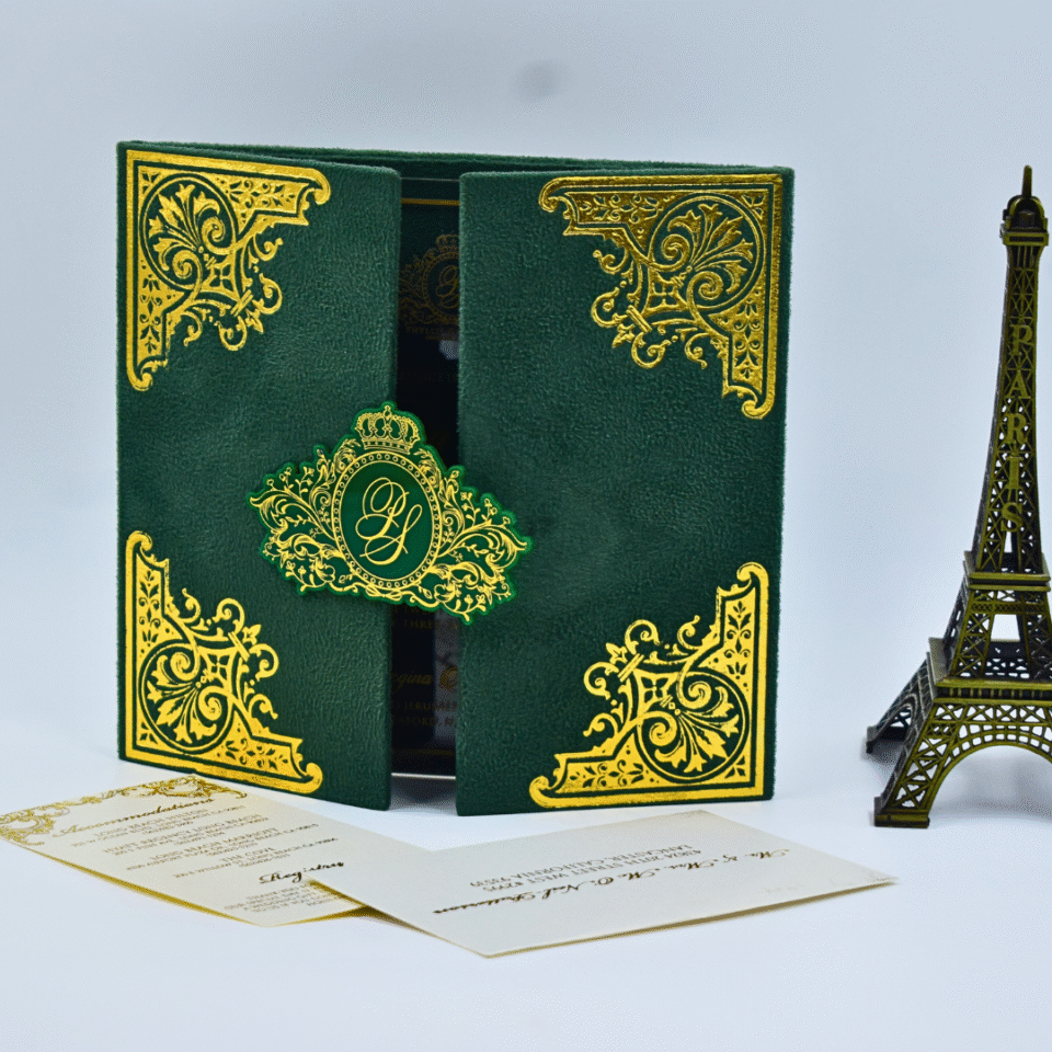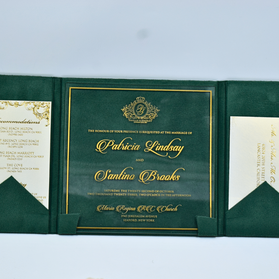 Dark Green Velvet Folio Invitation with Acrylic Invite