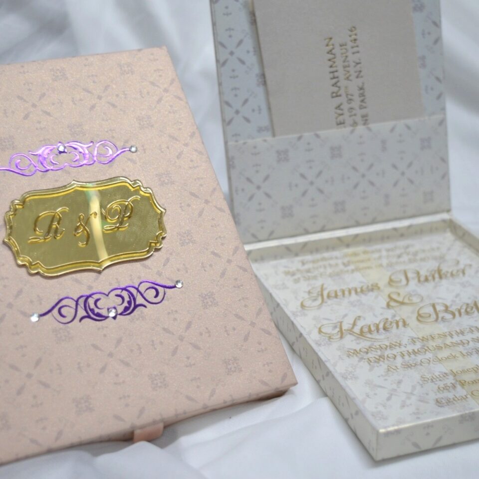 Rose Gold Wedding Invitation Box with Acrylic Invitation