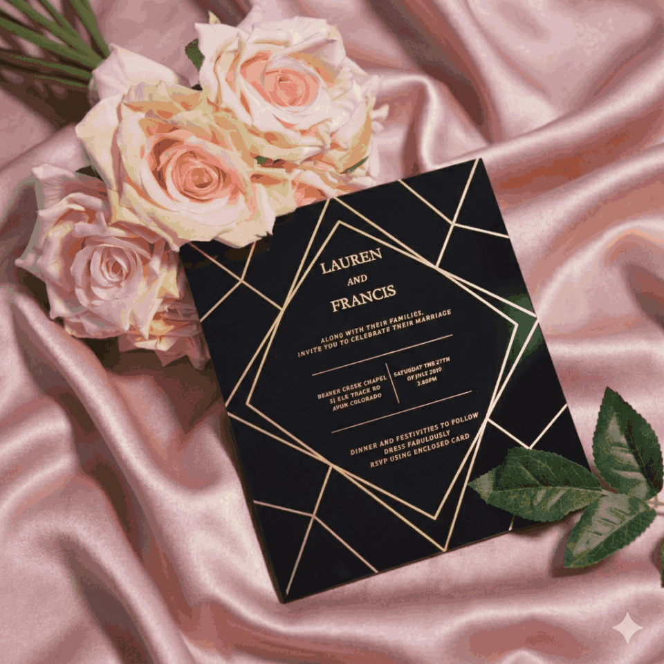 We offer a wide range of wedding invitations cards, including luxury boxed invitations, acrylic wedding invites, velvet and silk folio invitations, laser-cut designs, foil-stamped cards, and fully customized premium invitation sets. Each design can be tailored to match your wedding theme, color palette, and overall aesthetic.