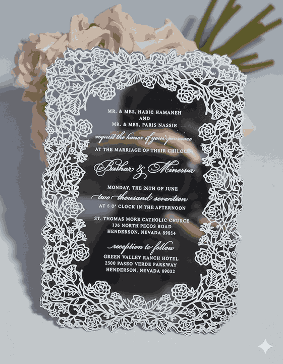 Silver Mirror Acrylic Invitation With Floral Laser-Cut Design