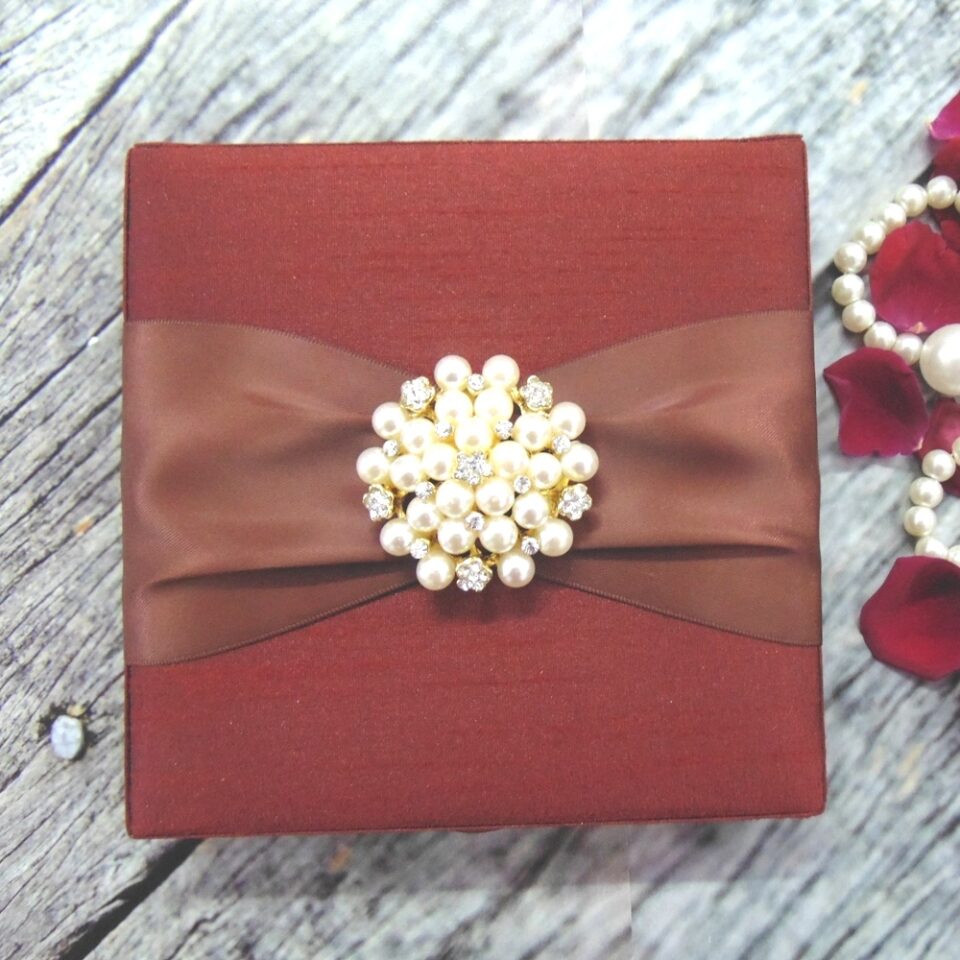 𝕋ℍ𝕀𝕊 𝕃𝕀𝕊𝕋𝕀ℕ𝔾 𝕀ℕℂ𝕃𝕌𝔻𝔼𝕊: A satin hinged lid wedding invitation box with a custom electroplated acrylic monogram. The box comes with a mirror acrylic invitation with laser-cut floral artwork and silk screen printed details. The boxed invitation has a pocket inside the lid for additional enclosure insert cards.