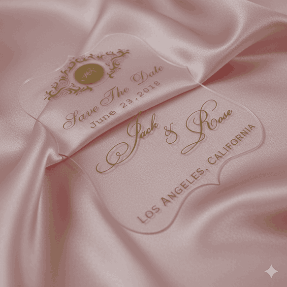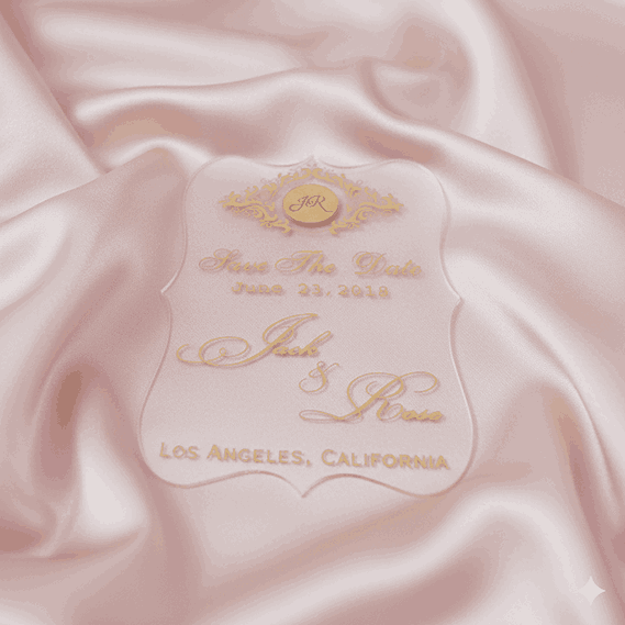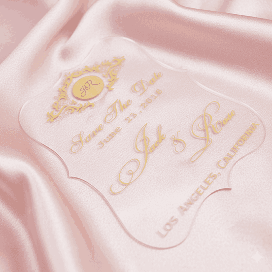 πβππ πππππβπΎ πββπππ»πΌπ: A clear acrylic invitation with laser-cut and silk-screen printed details. This acrylic invite comes with a mailing envelope.