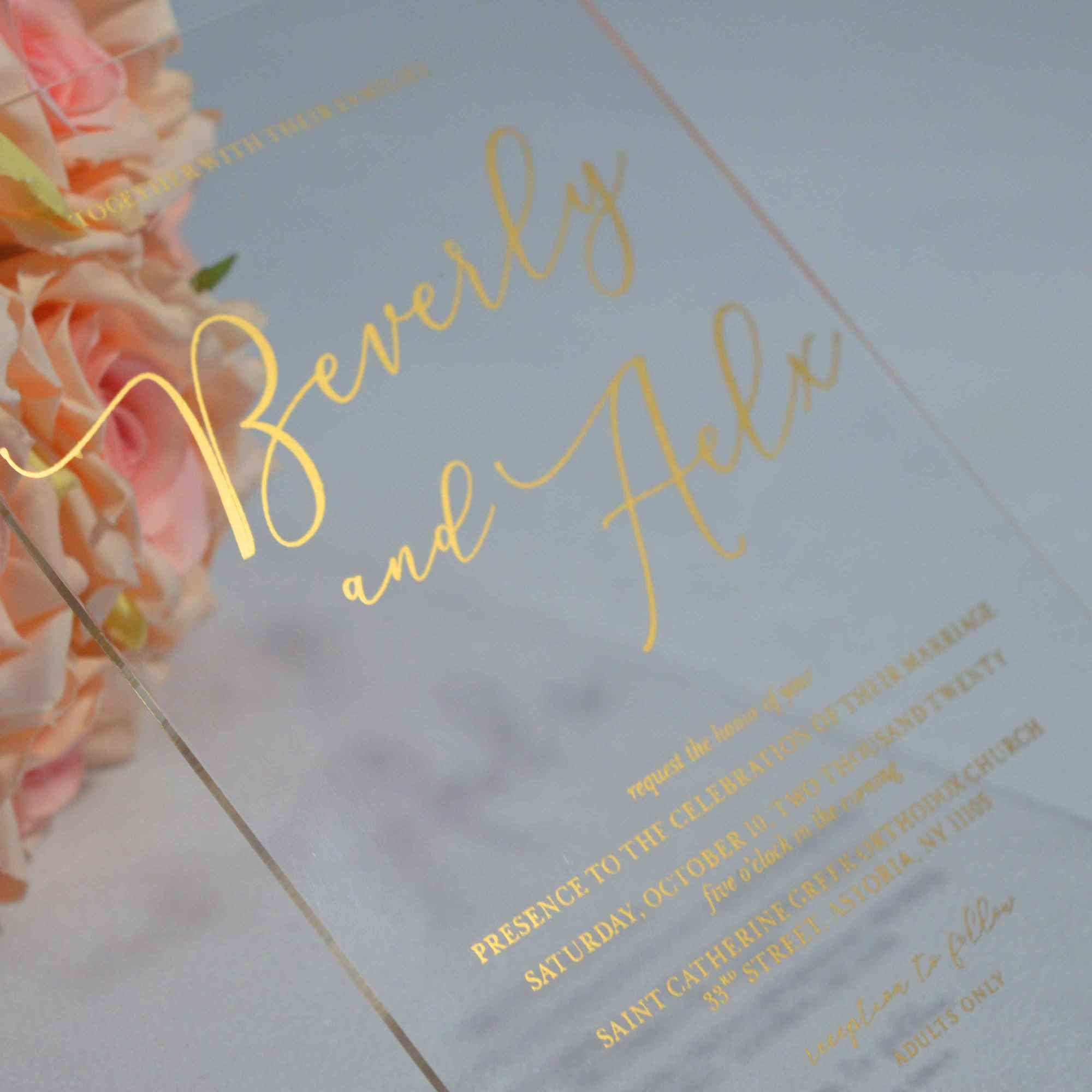 πβππ πππππβπΎ πββπππ»πΌπ: A clear acrylic wedding invitation with silk screen printed details. This minimalist acrylic invite comes with a paper mailing envelope.