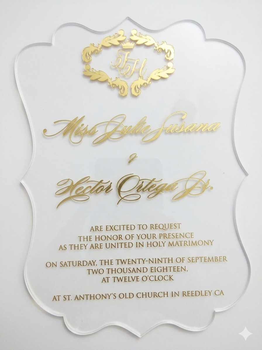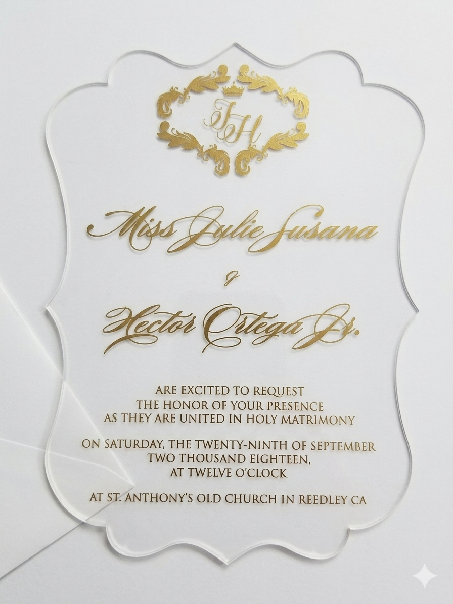 πβππ πππππβπΎ πββπππ»πΌπ: This die-cut shape clear acrylic wedding Invitation can be printed in any color. The invitation comes with a paper mailng envelope.