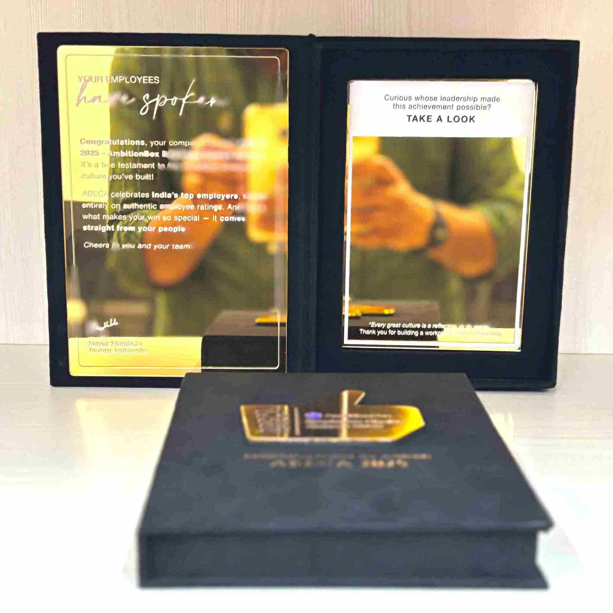Custom Interior Tailoring: Each box features a precision-molded insert, cradling the award securely and presenting it at the perfect angle upon opening.