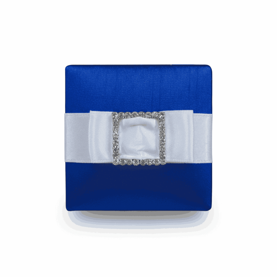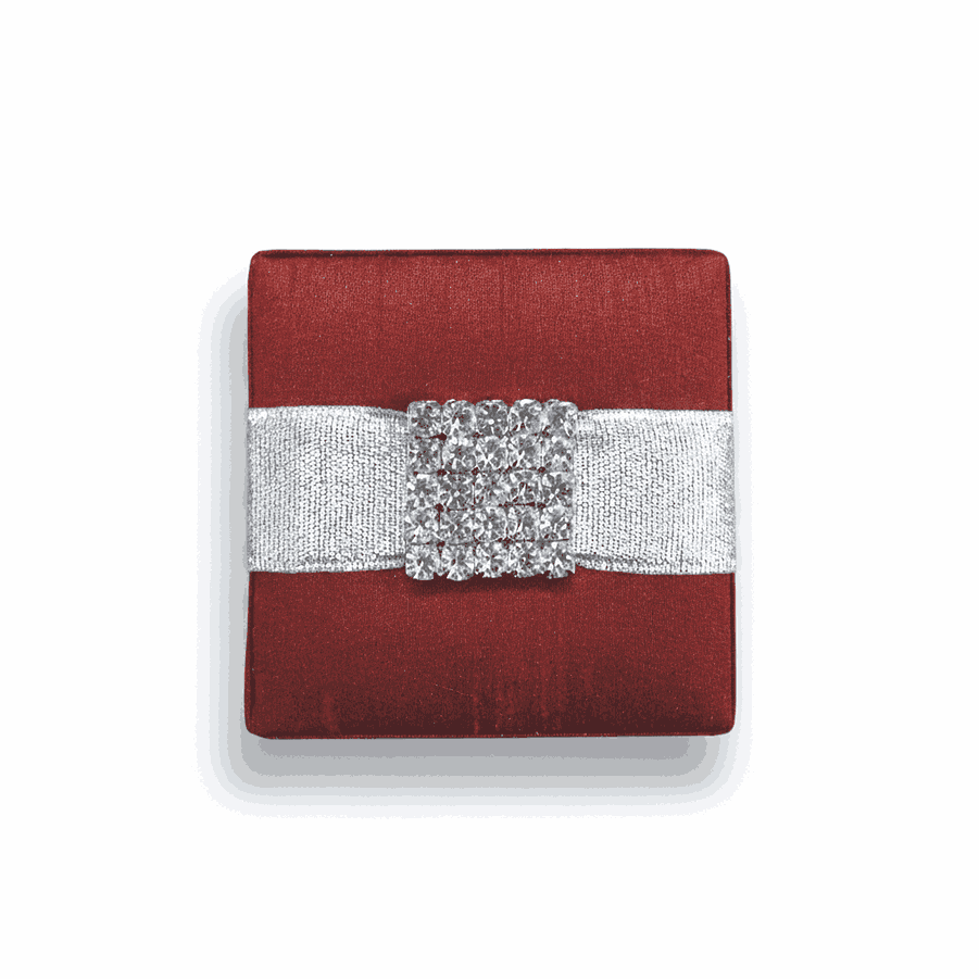 𝕋ℍ𝕀𝕊 𝕃𝕀𝕊𝕋𝕀ℕ𝔾 𝕀ℕℂ𝕃𝕌𝔻𝔼𝕊: A dupioni silk favor box with a removable lid adorned with rhinestones and starfish embellishment.