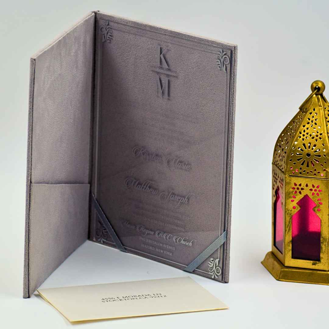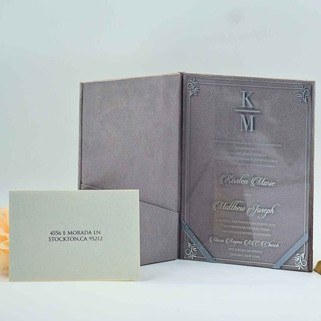 𝕋ℍ𝕀𝕊 𝕃𝕀𝕊𝕋𝕀ℕ𝔾 𝕀ℕℂ𝕃𝕌𝔻𝔼𝕊: This Nude Velvet Invitation Folio With Clear Acrylic Invite is a canvas for your unique taste, allowing complete customization. Our design team ensures your vision comes to life by adjusting colors, text, fonts, and wording to match your wedding theme. The luxurious suite includes a sophisticated velvet gatefold folio adorned with a custom foil monogram, adding a touch of glamor, and a sleek, clear acrylic invitation showcasing the event details.