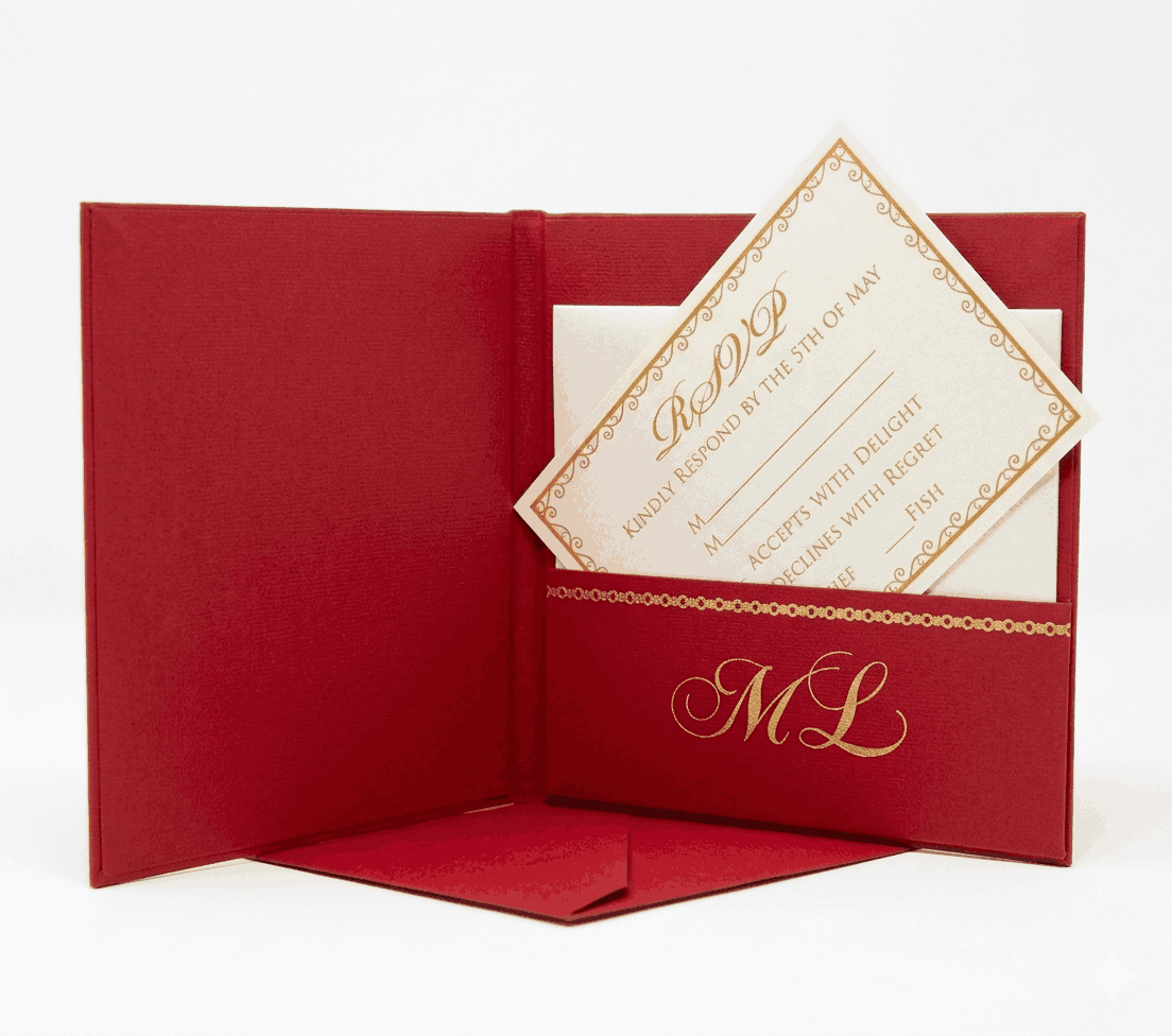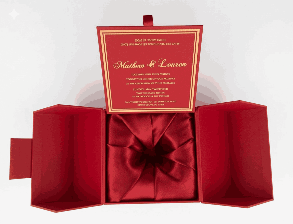 πβππ πππππβπΎ πββπππ»πΌπ: A luxury gate-foldΒ wedding invitaton box with crystal rhinestone monogram and hot-foiled details. The box has a bi-fold folio and hot hot foiled invitation insert inside. This set also includes a hardboard mailing box.