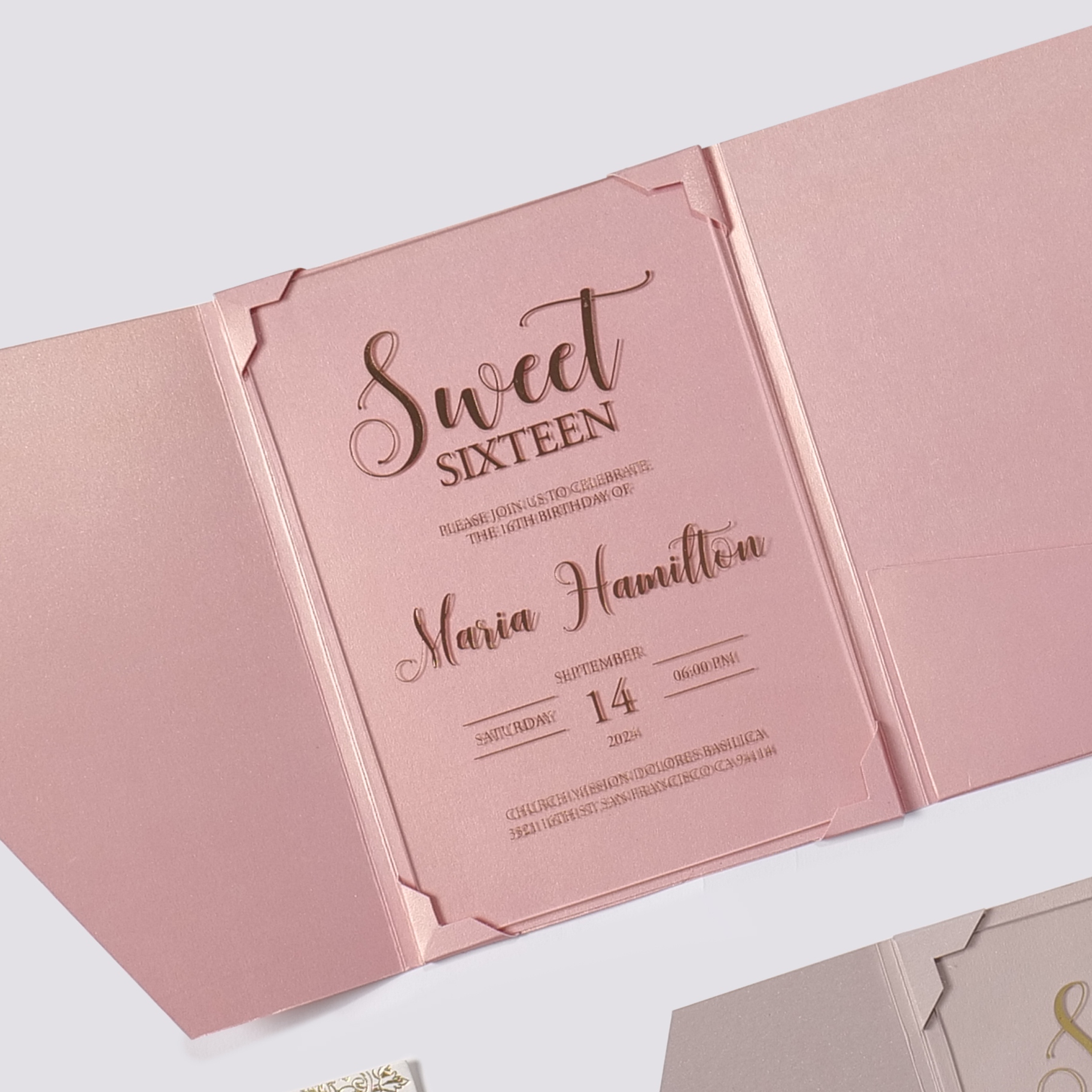 This luxurious sweet sixteen clear acrylic invitation is the perfect way to celebrate the milestone of turning sixteen. Crafted from high-quality clear acrylic, these contemporary invitations offer a stunning glass-like appearance that will leave a lasting impression on your guests. The elegant gold foil printing adds a touch of sophistication, making your event details shimmer and reflect the significance of your special day.