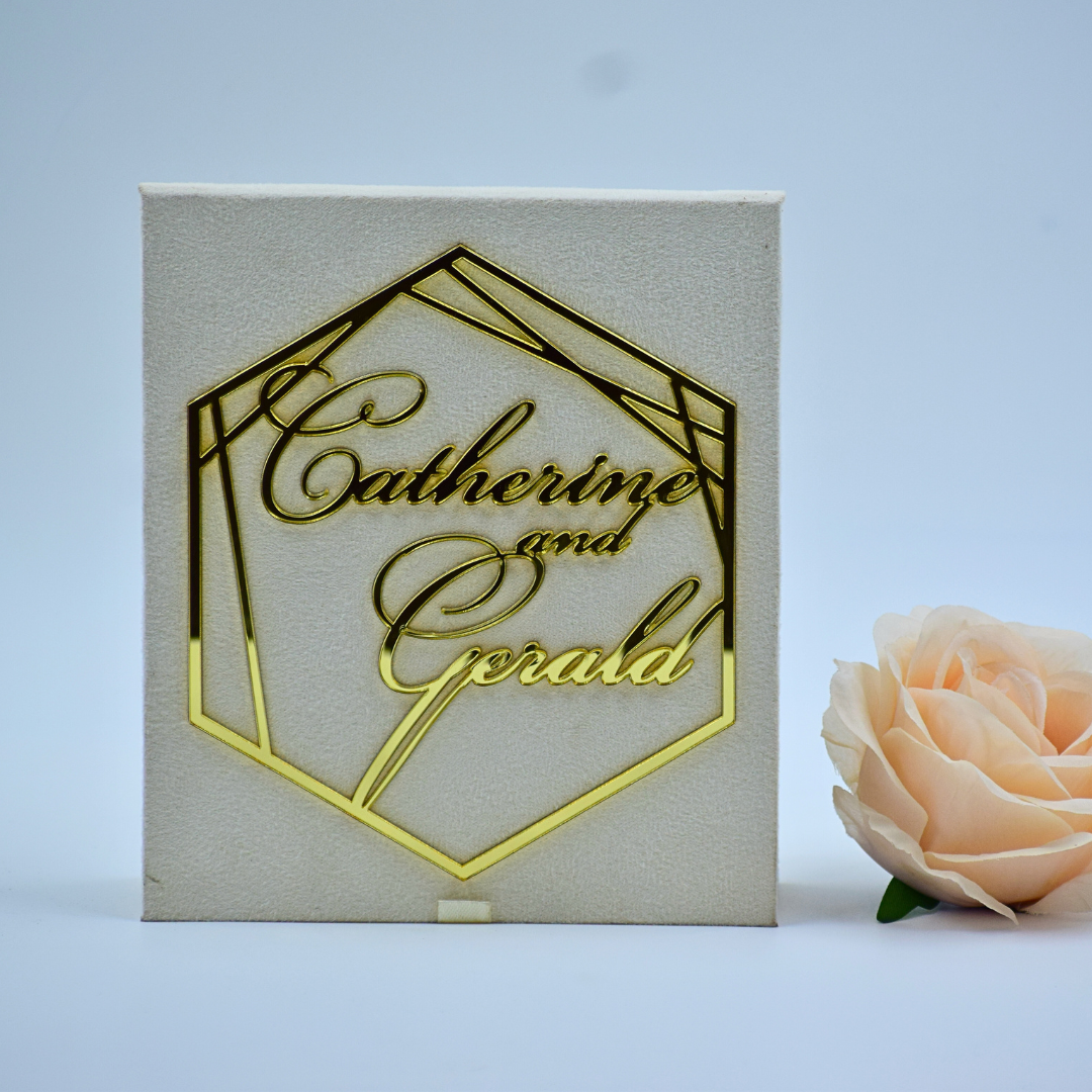 𝕋ℍ𝕀𝕊 𝕃𝕀𝕊𝕋𝕀ℕ𝔾 𝕀ℕℂ𝕃𝕌𝔻𝔼𝕊: This sumptuous suede folio invitation is a tactile marvel that seamlessly blends tradition with modernity. Its bi-fold design showcases a striking mirror acrylic laser-cut monogram, personalizing each invite. Inside, a frosted acrylic invitation awaits, creating an intriguing interplay of textures. This avant-garde ensemble transforms your wedding announcement into an unforgettable artistic statement, setting the tone for an extraordinary celebration.