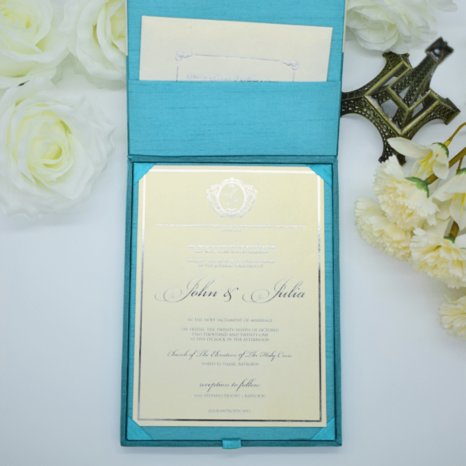 Silk Trifold Hardcover Jacket Folio Wedding Invitation