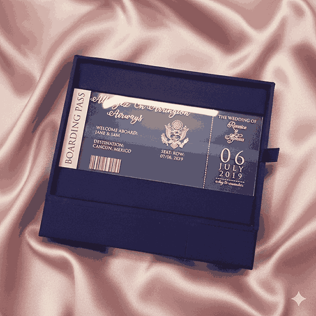 Destination Wedding Passport Invitation Box with Acrylic Invite